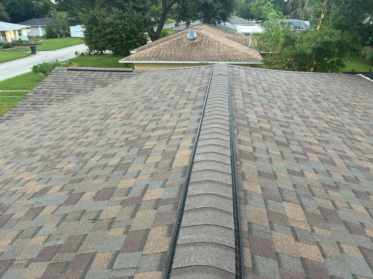 They made sure the ridge caps were even and the vents were in the right place. These features help keep air moving under the roof, which can help keep the heat down in places like St. Petersburg, where it’s hot.