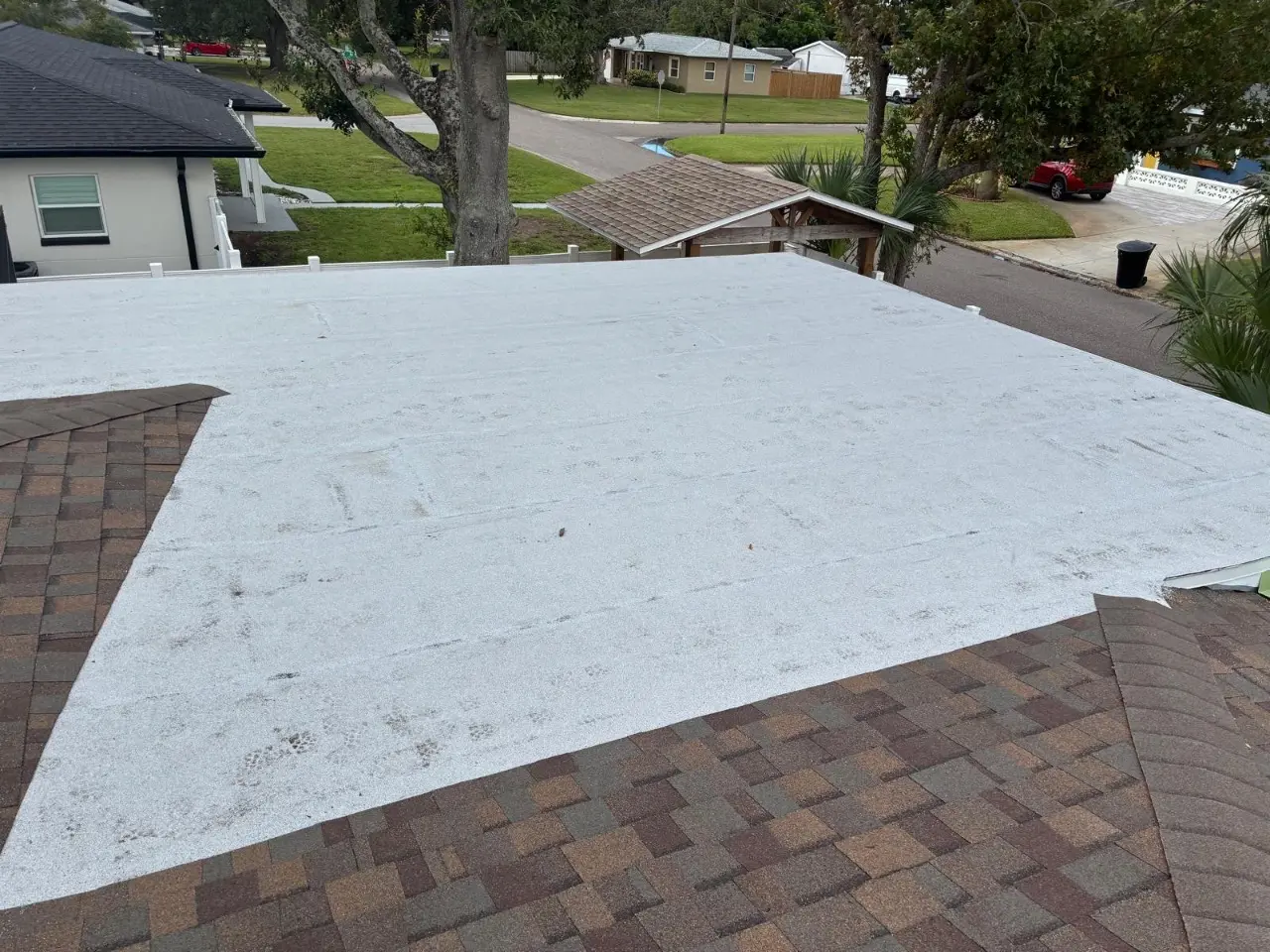 A recent residential roofing project on 25th Ave N in St. Petersburg demonstrates how multiple roofing systems can be integrated to support durability, visual consistency, and weather resistance. This property required both sloped and flat roof solutions, making it a strong example of how material selection and installation methods work together across different roof planes.