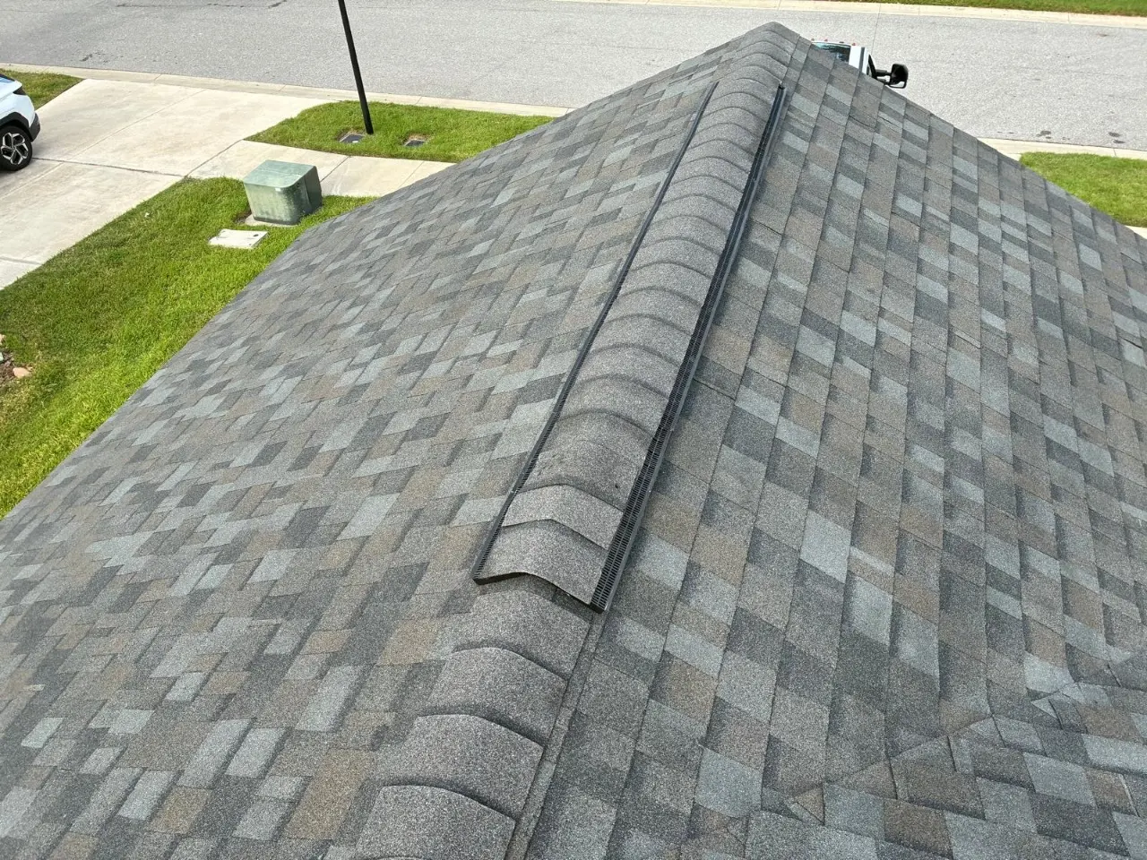 This replacement also improved the ventilation. Ridge venting was added along the prominent peaks to help airflow, reduce attic heat, and prevent moisture buildup. Proper ventilation not only keeps the indoor temperature comfortable but also extends the lifespan of roofing materials.